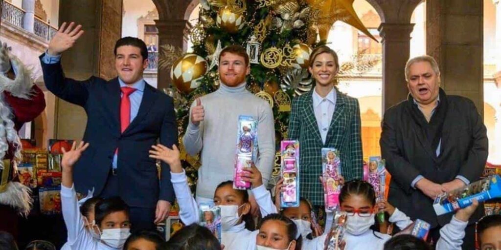 Luego de un año histórico, este martes Saul ‘El Canelo’ Álvarez decidió sorprender a los niños de Nuevo León con un cargamento de juguetes en vísperas de la Navidad, el cual llevó al Palacio de Gobierno, ubicado en Monterrey, con el fin de que estos obsequios sean repartidos dentro del Desarrollo Integral de la Familia (DIF) Capullos.