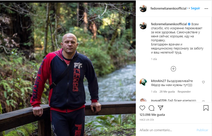 “Gracias a todos los que realmente están preocupados por mi salud. Me siento bien en estos momentos. Estoy mejorando. Agradecido con los doctores y al equipo médico por su cuidado y trabajo duro“, escribió Emilianenko en su cuenta de Instagram.