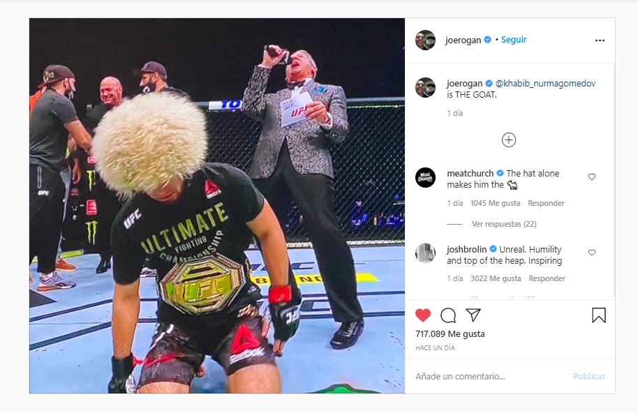 A través de su cuenta de Instagram, Rogan dio a conocer que Nurmagomedov sí es el ‘Mejor de todos los tiempos’ en las MMA.