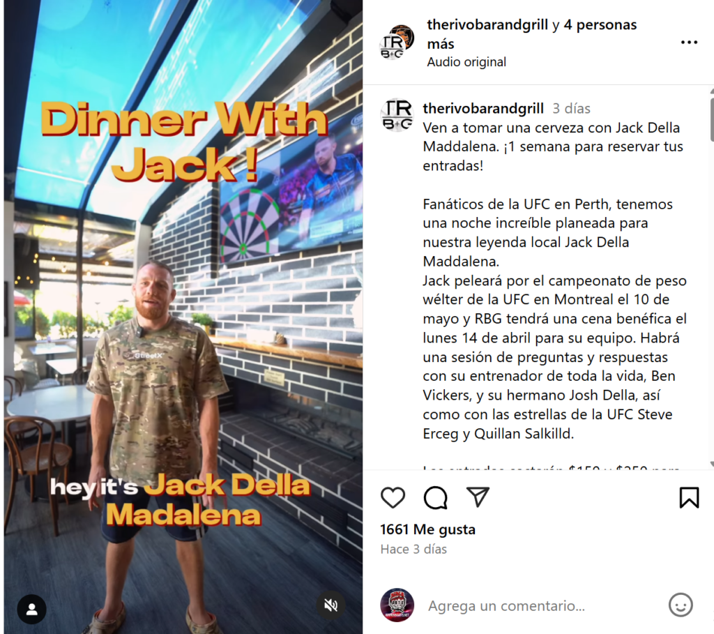 En una reciente publicación en redes sociales, se mencionó que la UFC cubre los vuelos y el alojamiento por seis noches para dos personas durante la semana de la pelea. El resto del equipo de Della Maddalena debe pagar sus propios gastos, lo que llevó a que un bar y parrilla en Australia organizara una recaudación de fondos para ayudar con los costos.