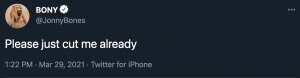 Apenas acabo el combate entre Ngannou y Miocic, Jones publicó el siguiente trino, en el que sugiere que está dispuesto a enfrentarse al camerunés, pero solo si le ofrecen una buena cantidad de dinero a cambio: