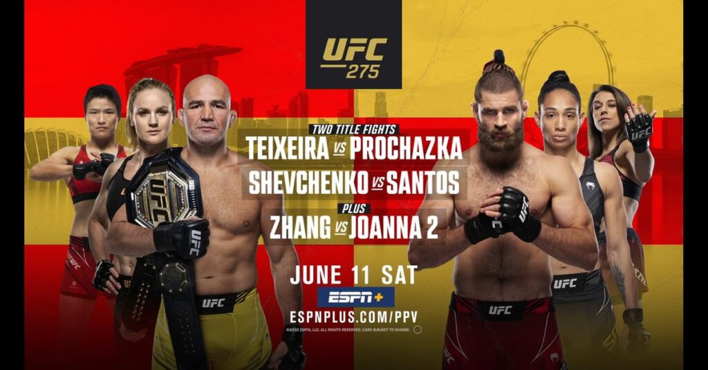 El UFC 275 contará con una cartelera de dos peleas titulares entre Glover Teixeira vs Jiri Prochazka y Valentina Shevchenko vs Taila Santos. .