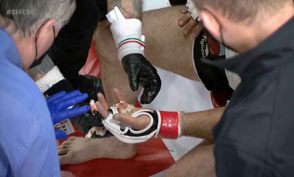 El periodista sostuvo que el presidente de CFFC, Rob Haydak, confirmó que el dedo fue encontrado en el guante del luchador, quien fue remitido a un hospital para que se lo cosieran a la mano.